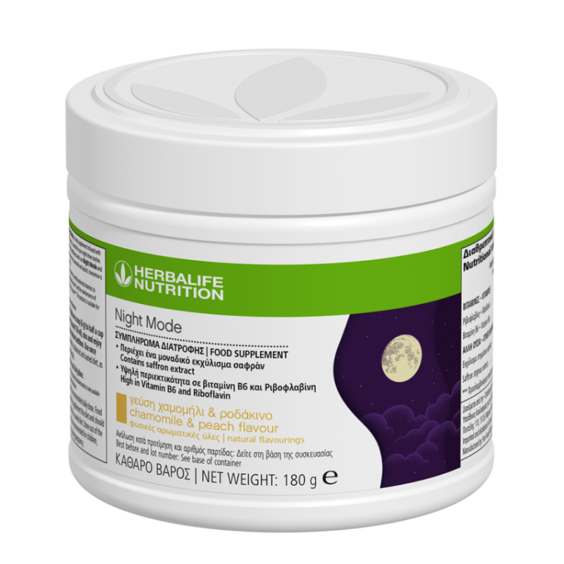 7 ημέρες* για καλύτερο ύπνο με το Night Mode της Herbalife. Ένα ρόφημα για το βράδυ, πριν από τον ύπνο, που περιέχει ένα μοναδικό εκχύλισμα σαφράν, το οποίο είναι επιστημονικώς τεκμηριωμένο ότι βελτιώνει την ποιότητα του ύπνου σε μόλις 7 ημέρες*. Το εκχύλισμα σαφράν μπορεί επίσης να βελτιώσει τη διάθεσή σας μετά το πρωινό ξύπνημα και να διατηρήσει υψηλά τα βραδινά επίπεδα μελατονίνης σας, υποστηρίζοντας την εύρυθμη λειτουργία του κύκλου ύπνου & αφύπνισης ** Το εκχύλισμα σαφράν που περιέχει το Night Mode (SKU 282K) θα σας βοηθήσει επίσης στη μείωση της έλλειψης ύπνου**, ενώ ο ποιοτικός ύπνος κατά τη διάρκεια της νύχτας θα σας αναζωογονήσει με ανανεωμένη ενέργεια για την επόμενη μέρα.